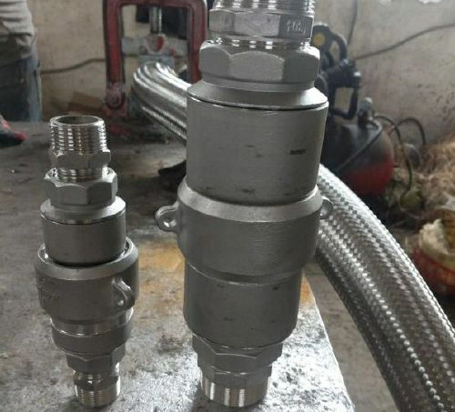 3、插軸、插套內孔(kǒng)中各置(zhì)一個單向閥。在連接接頭時,產生自鎖作用,使插軸被鎖定在插套孔(kǒng)內不至脫落,從 而實現快速連接。同時插(chā)軸頭部外圓有O型(xíng)圈實現軸向密封,內部流(liú)體不至(zhì)向外泄漏。當須使接頭的兩端脫開時(shí),閥芯將快(kuài)速自動(dòng)封閉,使接頭內部流體不至向外泄漏,從而實(shí)現快速脫離並保持內部(bù)流體。